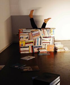 Danser avec les livres est « le » spectacle qui inspire ces rencontres d’atelier créatif. Laurence qui est coauteur avec Pascale Tardi de Danser avec les albums jeunesse (2015, Canopé éditions) songe : « Le corps se souvient. » Mais l’expérience ouvre d’autres possibilités. Pas d’objets à terre (prudence…) mais toujours des couleurs pour ce nouveau et troisième parcours qui se joue « A un fil ». Une pluie de plumes extraordinaire et un réseau de fils de laine : « C’est intéressant corporellement. On crée de l’émotion, du lien et des obstacles. Les familles seront invitées fin novembre à visiter ces créations, un réalisateur va filmer, et les rencontres seront les bienvenues dans quelques mois. On travaille sur des liens en mouvement. »