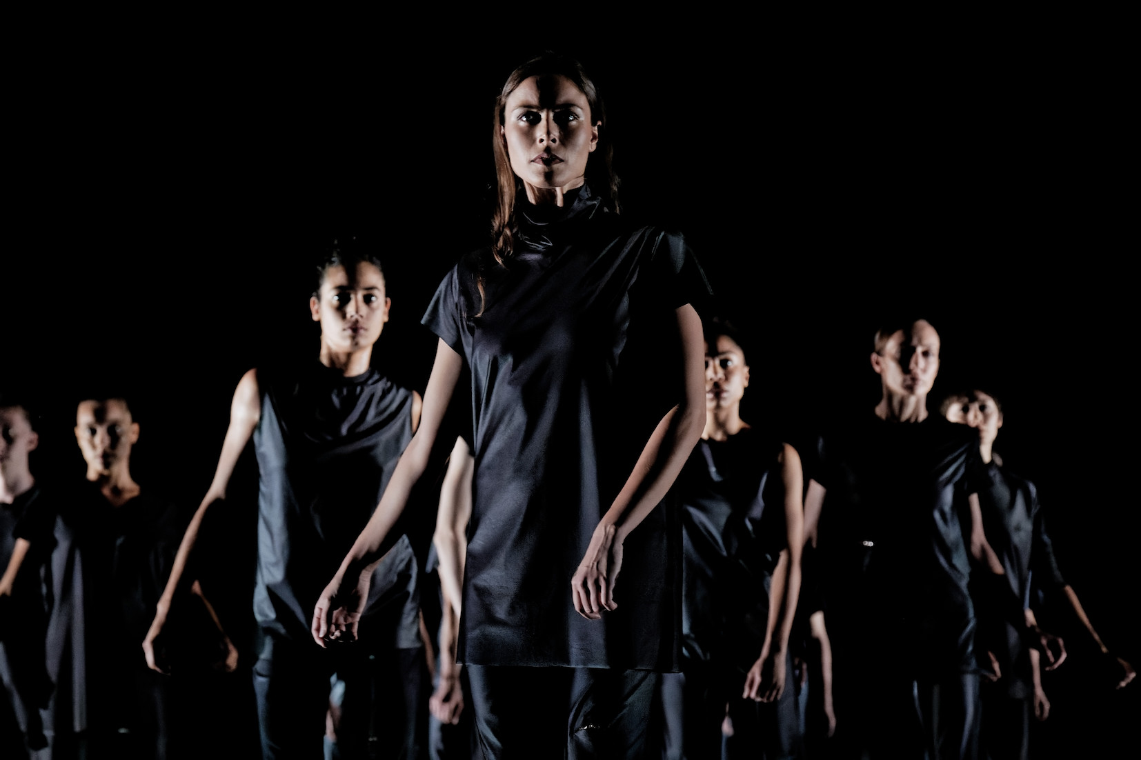 Très, très curieusement, on n’opposerait pas totalement Matière grise et Mycelium, une autre pièce vue récemment à Montpellier dans le cadre de la saison de l’Agora Danse. Or, pour Mycelium, on se retrouve parmi les presque deux mille spectateurs vieillissants du monumental Opéra Berlioz du Corum de Montpellier, son plateau géant, sur lequel évolue le super-effectif de vingt danseuses et danseurs du Ballet de Lyon, avec tout ce que cela signifie d’irréprochable démonstration d’excellence virtuose. Bref : l’inverse des valeurs cultivées à « exerce ». Avec pareil déploiement de moyens, Mycelium aurait tout pour simplement épater le bourgeois. Sauf.