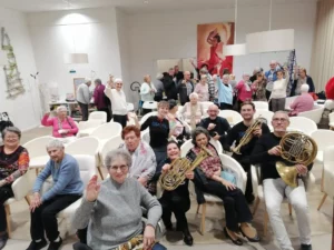 Les partenaires sont motivés. A Saint-Pons le partenariat est établi avec les enfants de la MECS (Maison d’Enfants à Caractère Social), à Grabels avec l’école de musique. Il y a dans le Sud peu d’ensembles de ce genre, sauf à Toulouse, et autour de Lyon où chaque ville avait son orchestre. En dehors de cette semaine de stage et de concerts, certains musiciens interviennent dans les Ehpads. C’est un échange qui est tout aussi essentiel au sein de l’orchestre, et fait partie de son identité : son caractère intergénérationnel, car des retraités jouent avec des enfants d’une dizaine d’années. De 9 à 75 ans au même pupitre !